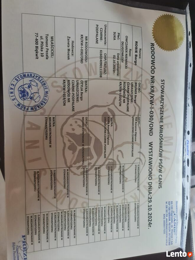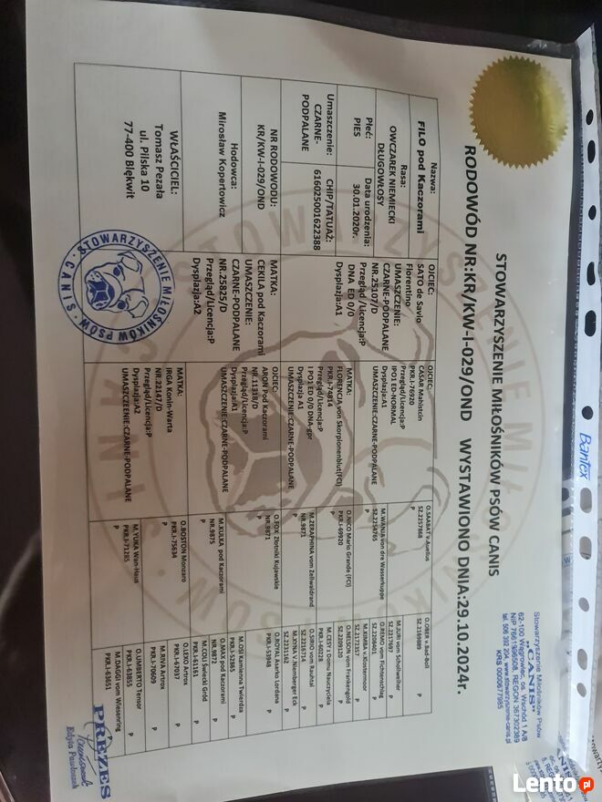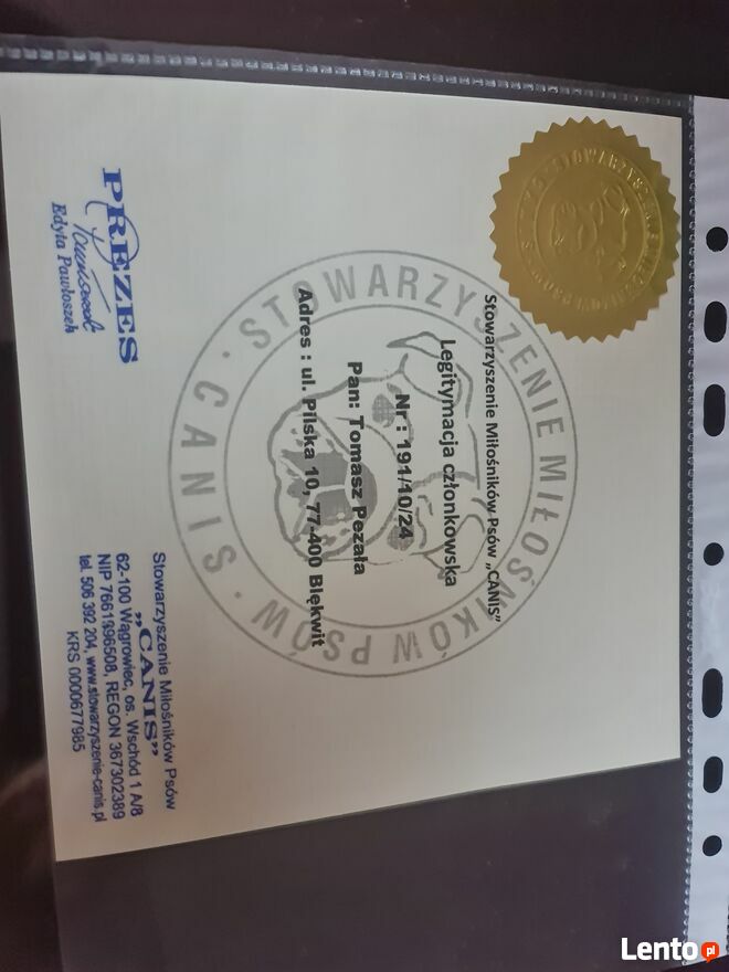 WitamNależymy do Sowarzyszeniu Miłośników Psów "CANIS" o numerze REGON 367 - pokaż numer telefonu - .